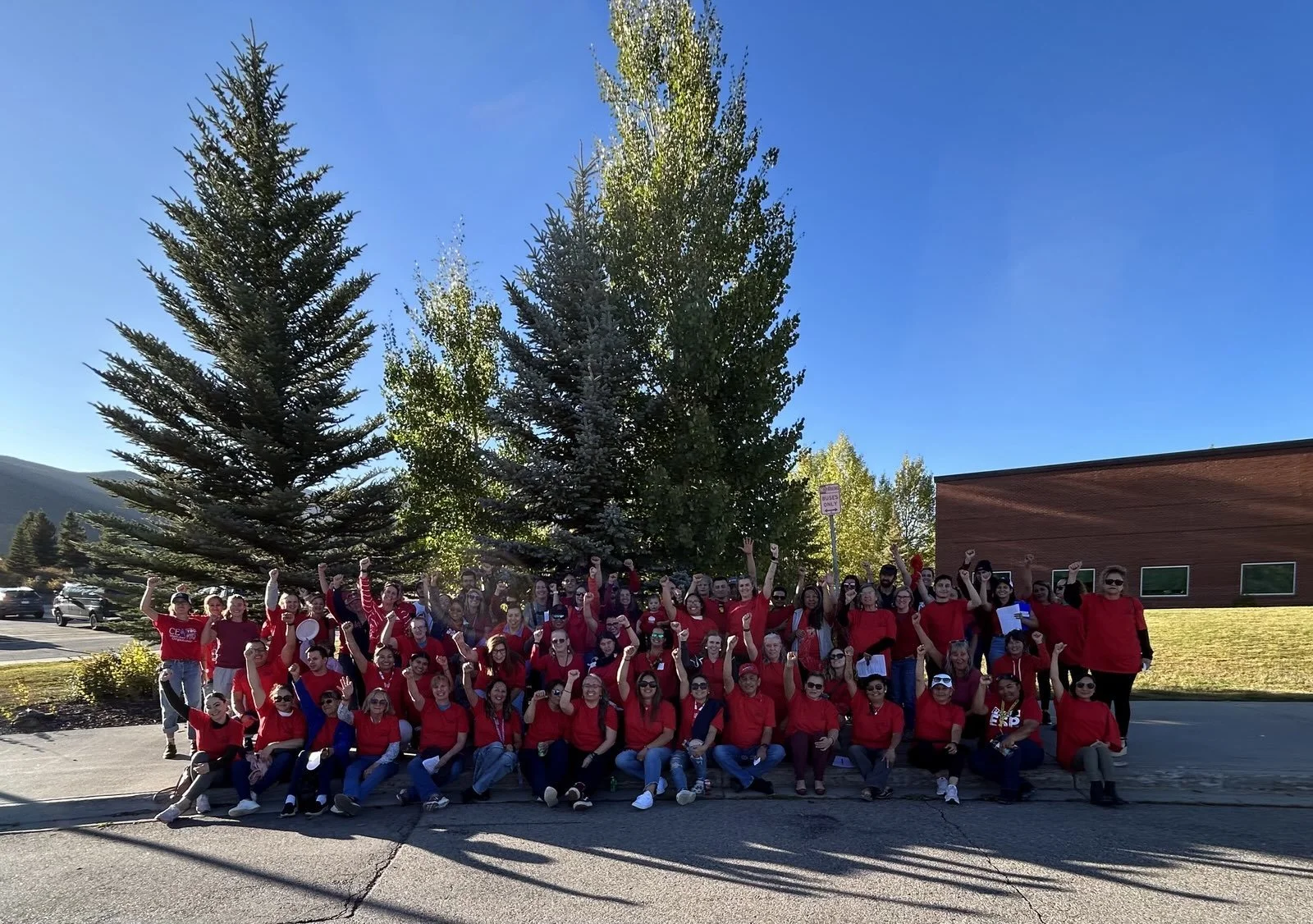 Thus, on September 18th, more than 130 support staff, teachers, parents, students, and community members packed the Summit School District Board of Education meeting to demand recognition of our union. One of the support staff leaders stood in front of this crowd and read a short speech, prior to entering the building, as we chanted “Union, YES!” in a crowd of red shirts. The speech read:
